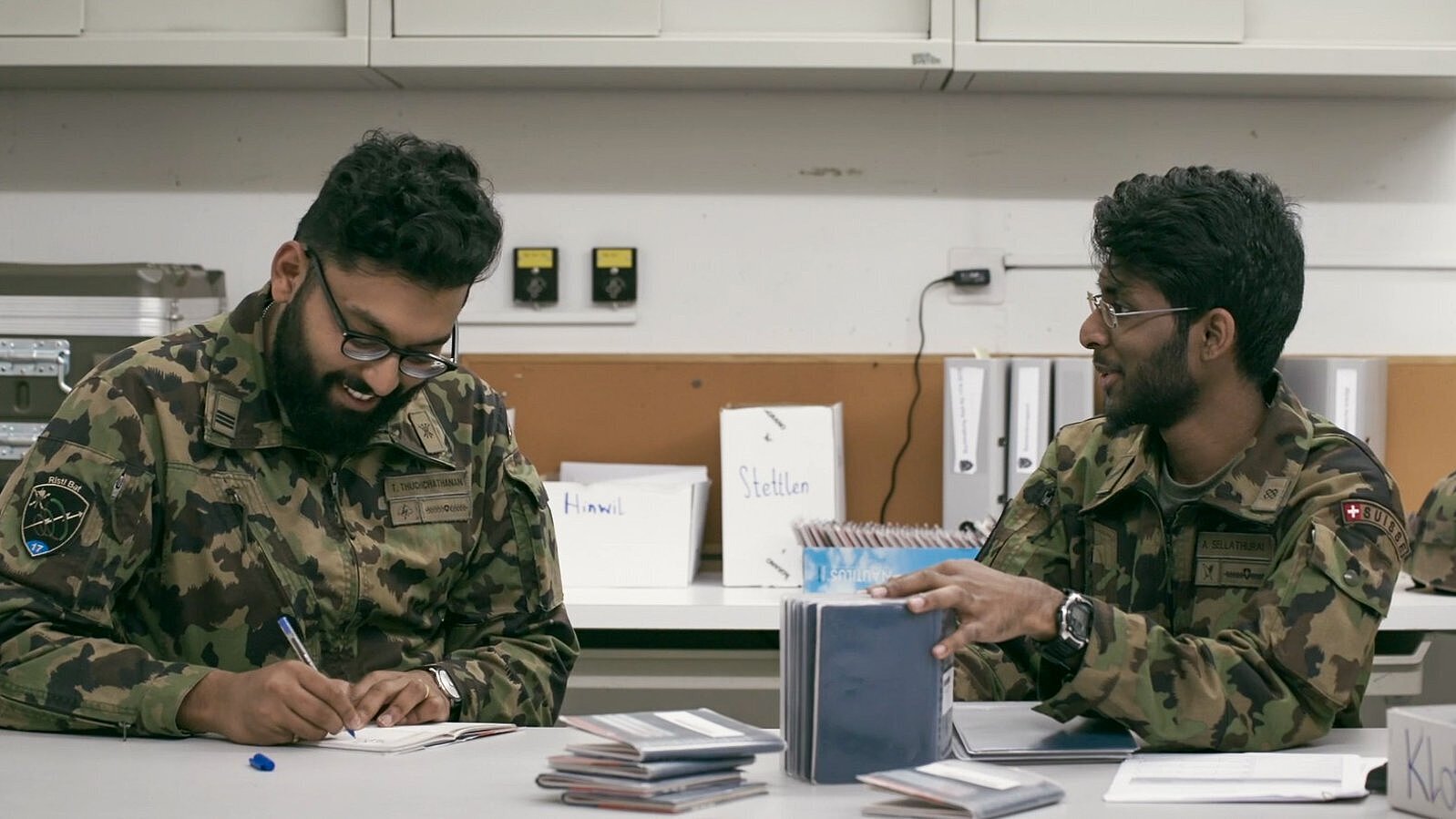 "Die Schweiz im Jahr 2021. Saad aus Fribourg macht sich auf den Weg in die Kaserne in Bure. In Zürich packt Thuruban seine Militärsachen - und auch Andrija zieht seine Uniform an. Wie viele andere sind Saad, Thuruban und Andrija in der Schweiz eingebürgert, sie sind sogenannte «Secondos» und leisten Dienst. Aber kann ein echter Eidgenosse sein, wer eine andere Hautfarbe, eine andere Religion oder den falschen Namen hat? Wie steht es um diese Bürger, die trotz Schweizer Pass in zivil bisweilen benachteiligt werden? Wie üben sie für den Ernstfall die Verteidigung eines Landes, das sie nur bedingt akzeptiert?" [Pressetext]